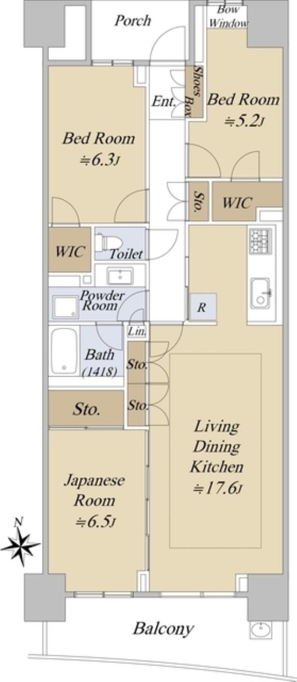 間取内訳 | LDK17.6畳 洋室6.3畳 洋室5.2畳 和室6.5畳 | ||