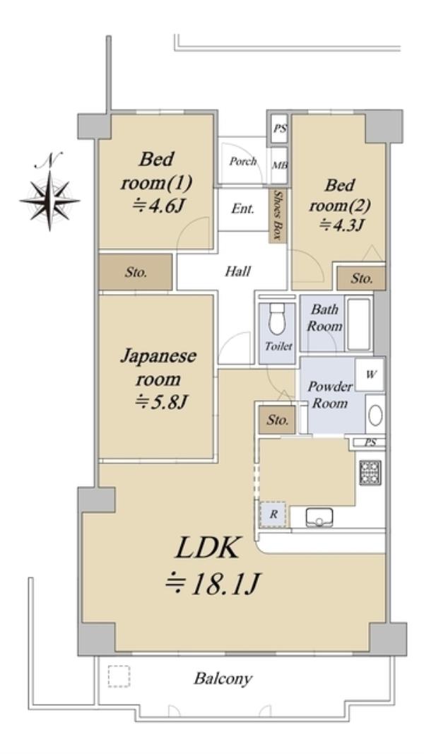 | 間取内訳 | LDK18.1畳 和室5.8畳 洋室4.6畳 洋室4.3畳 | ||