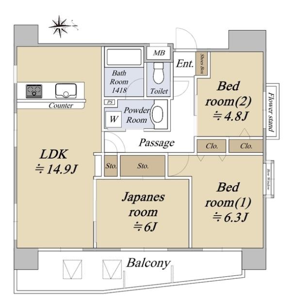 | 間取内訳 | 洋室6.3畳 洋室4.8畳 LDK14.9畳 和室6.0畳 | ||