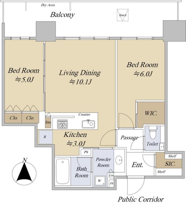 | 専有面積 | 57.23m2 | 間取り | 2LDK |