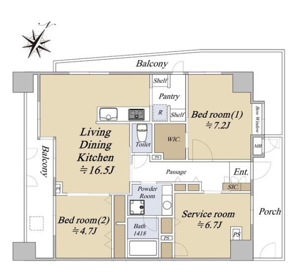 | 間取内訳 | LDK16.5畳 洋室7.2畳 洋室4.7畳 その他6.7畳 | ||