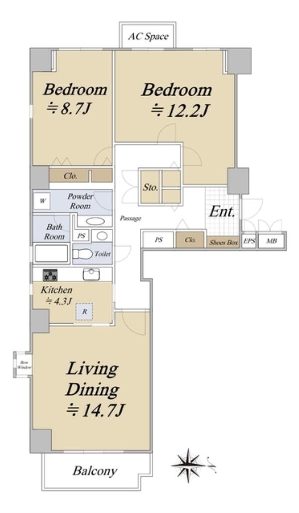 | 間取内訳 | LDK19.0畳 洋室12.2畳 洋室8.7畳 | ||