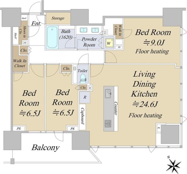 | 間取内訳 | LDK24.6畳 洋室6.5畳 洋室6.5畳 洋室9.0畳 | ||