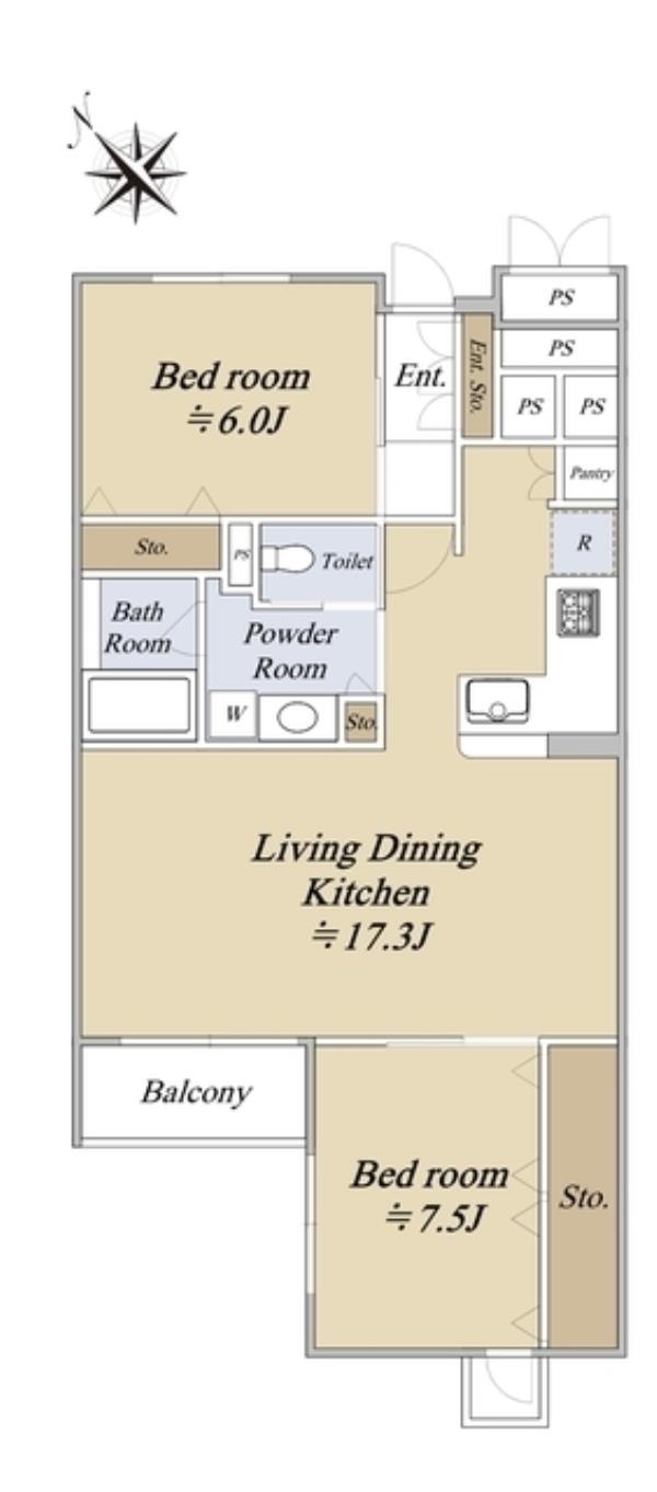 | 間取内訳 | LDK17.3畳 洋室7.5畳 洋室6.0畳 | ||