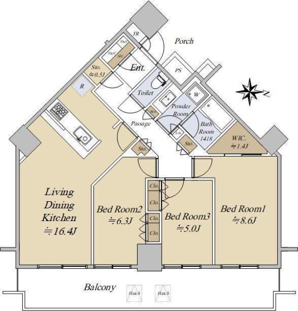 | 間取内訳 | LDK16.4畳 洋室8.6畳 洋室6.3畳 洋室5.0畳 | ||