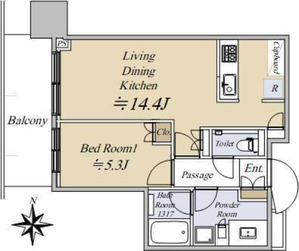 | 間取内訳 | LDK14.4畳 洋室5.3畳 | ||