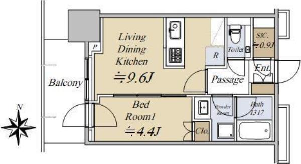 | 間取内訳 | LDK9.6畳 洋室4.4畳 | ||