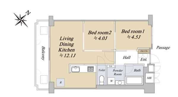 | 間取内訳 | 洋室4.5畳 洋室4.0畳 LDK12.1畳 | ||