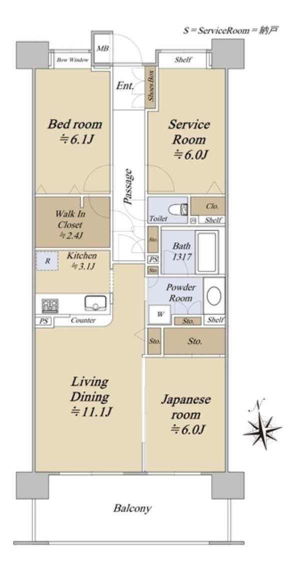 - 2SLDK※Sはサービスルーム(納戸)
