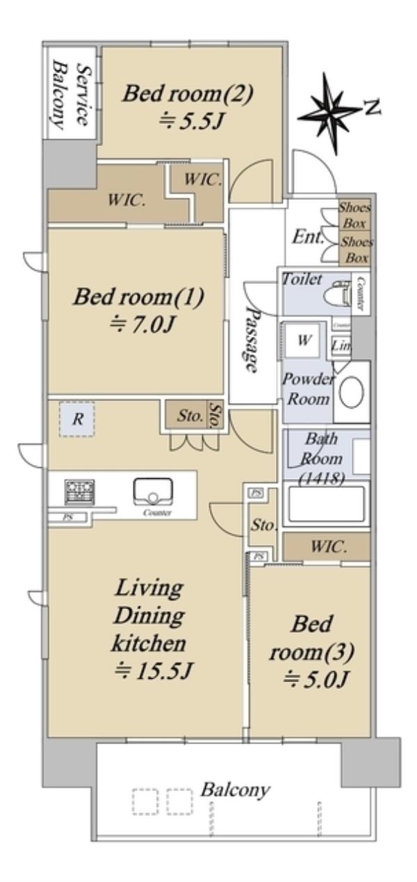 | 間取内訳 | LDK15.5畳 洋室7.0畳 洋室5.5畳 洋室5.0畳 | ||
