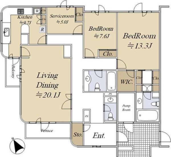 - 2SLDK※Sはサービスルーム(納戸)