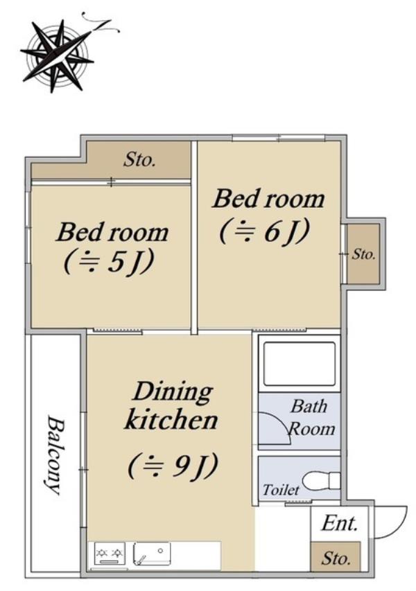 | 専有面積 | 44.38m2 | 間取り | 2DK |