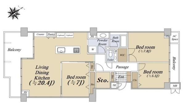 | 間取内訳 | LDK20.4畳 洋室7.8畳 洋室7.0畳 洋室5.5畳 | ||