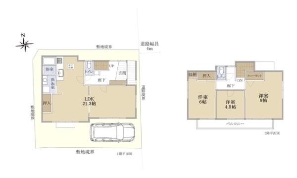 | 間取内訳 | 洋室9.0畳 洋室6.0畳 洋室4.5畳 LDK21.3畳 | ||
