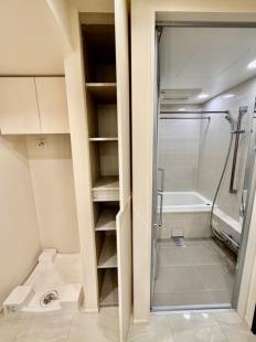- 洗濯機横の収納スペース