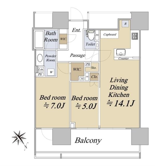 | 間取内訳 | LDK14.1畳 洋室7.0畳 洋室5.0畳 | ||