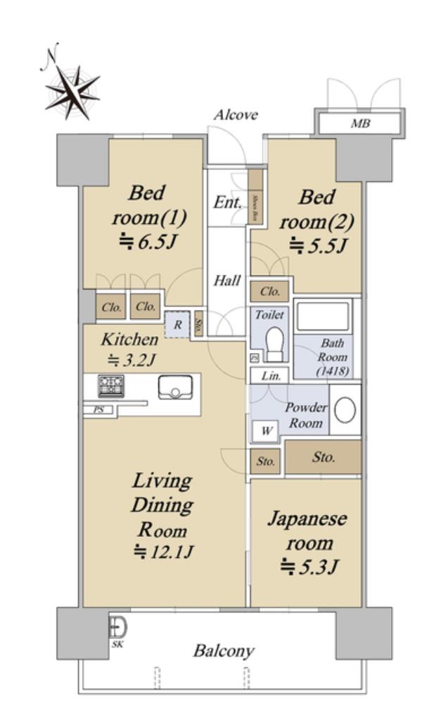 | 間取内訳 | LDK15.3畳 洋室6.5畳 洋室5.5畳 和室5.3畳 | ||