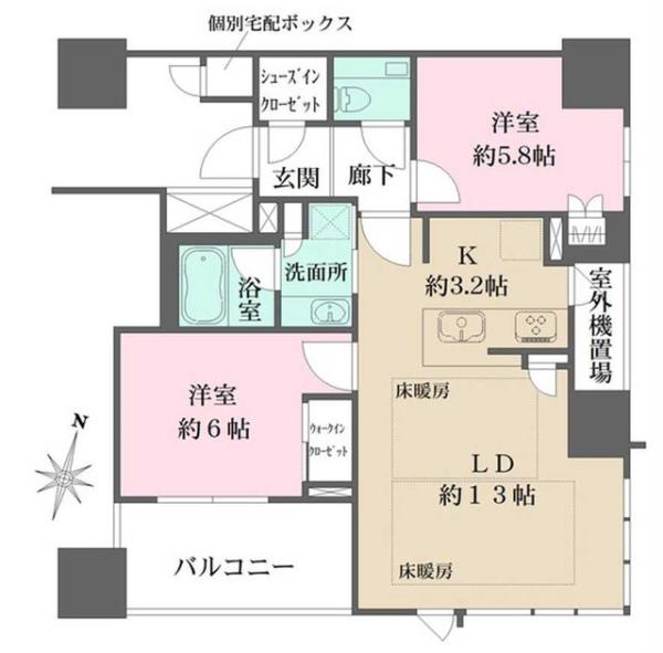 | 間取内訳 | LDK16.2畳 洋室6.0畳 洋室5.8畳 | ||