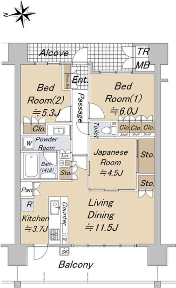 | 間取内訳 | LDK15.2畳 洋室6.0畳 洋室5.3畳 和室4.5畳 | ||