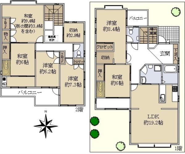 | 間取内訳 | LDK19.2畳 和室6.0畳 洋室8.4畳 和室6.0畳 和室9.4畳 洋室6.2畳 洋室7.3畳 | ||