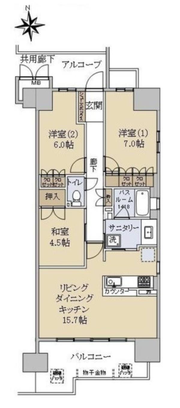 | 間取内訳 | LDK15.7畳 洋室7.0畳 洋室6.0畳 和室4.5畳 | ||
