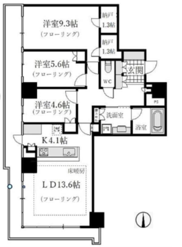 | 間取内訳 | LDK17.7畳 洋室9.3畳 洋室5.6畳 洋室4.6畳 | ||