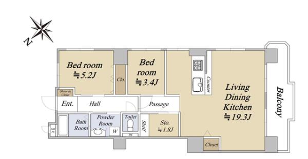 | 専有面積 | 68.06m2 | 間取り | 2SLDK ※Sはサービスルーム(納戸) |