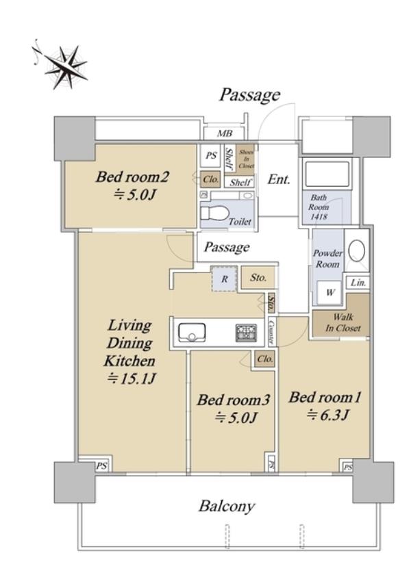| 間取内訳 | 洋室6.3畳 洋室5.0畳 洋室5.0畳 LDK15.1畳 | ||