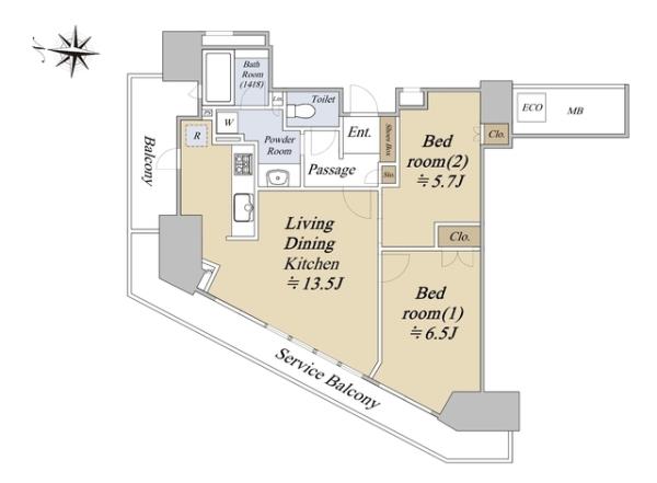 | 間取内訳 | 洋室6.5畳 洋室5.7畳 LDK13.5畳 | ||