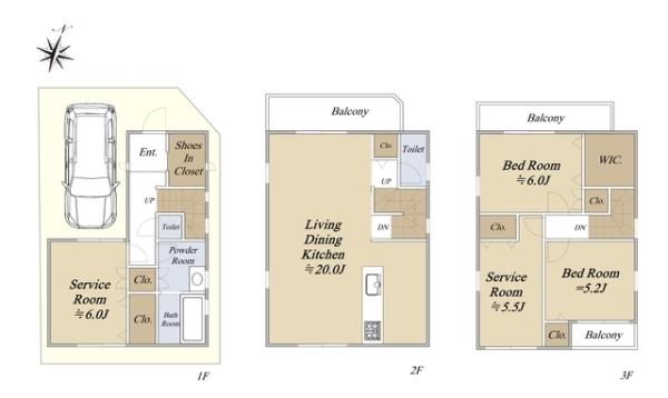 | 間取内訳 | 洋室6.0畳 洋室5.2畳 その他6.0畳 その他5.5畳 LDK20.0畳 | ||