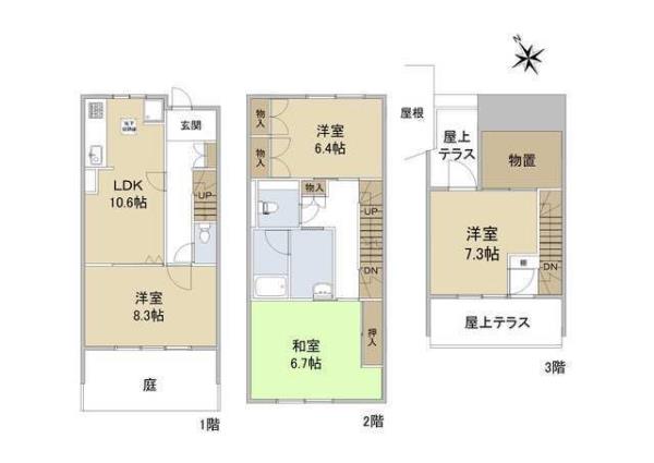 | 間取内訳 | LDK10.6畳 洋室8.3畳 洋室6.4畳 和室6.7畳 洋室7.3畳 | ||