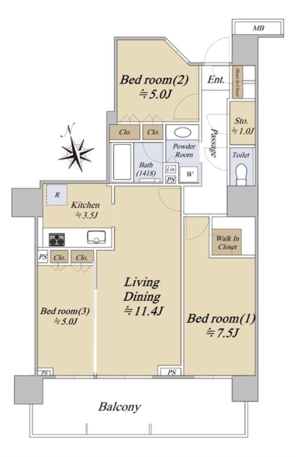 | 専有面積 | 75.01m2 | 間取り | 3LDK |