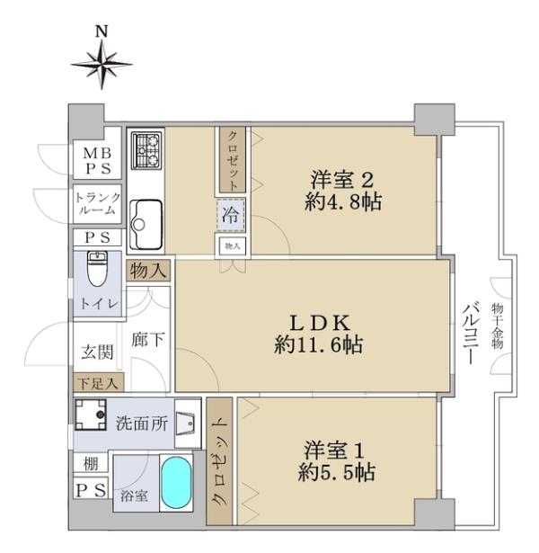 | 間取内訳 | LDK11.6畳 洋室5.5畳 洋室4.8畳 | ||