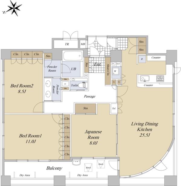 | 間取内訳 | LDK25.5畳 洋室11.0畳 洋室8.5畳 和室8.0畳 | ||