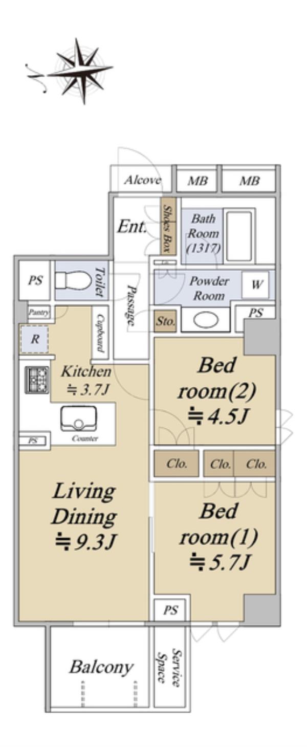 | 間取内訳 | LDK13.0畳 洋室5.7畳 洋室4.5畳 | ||