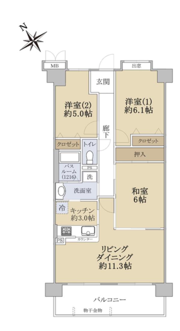 | 専有面積 | 69.6m2 | 間取り | 3LDK |