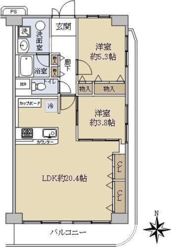 | 間取内訳 | LDK20.4畳 洋室5.3畳 洋室3.8畳 | ||