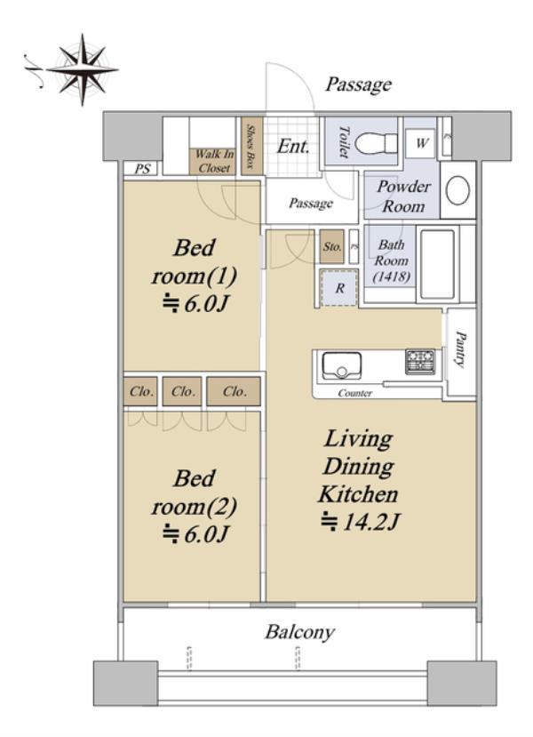 | 間取内訳 | LDK14.2畳 洋室6.0畳 洋室6.0畳 | ||