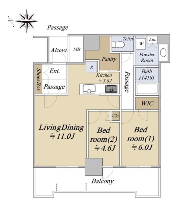 | 専有面積 | 63.88m2 | 間取り | 2LDK |