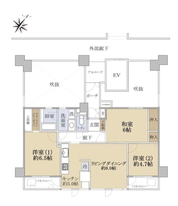 | 間取内訳 | LDK13.0畳 洋室6.5畳 洋室6.0畳 和室4.7畳 | ||