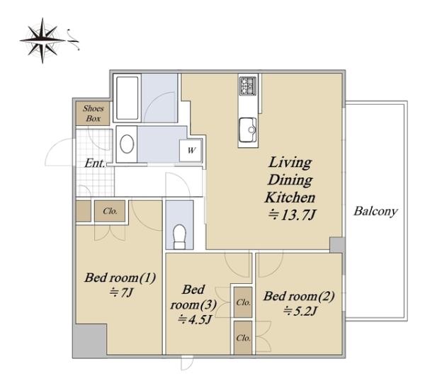| 間取内訳 | LDK13.7畳 洋室7.0畳 洋室5.2畳 洋室4.5畳 | ||