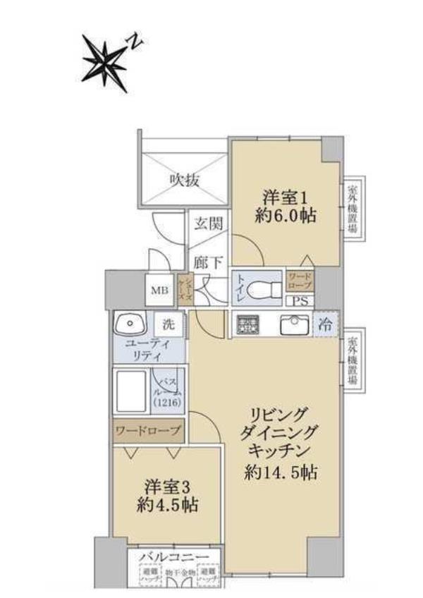 | 間取内訳 | LDK14.5畳 洋室6.0畳 洋室4.5畳 | ||