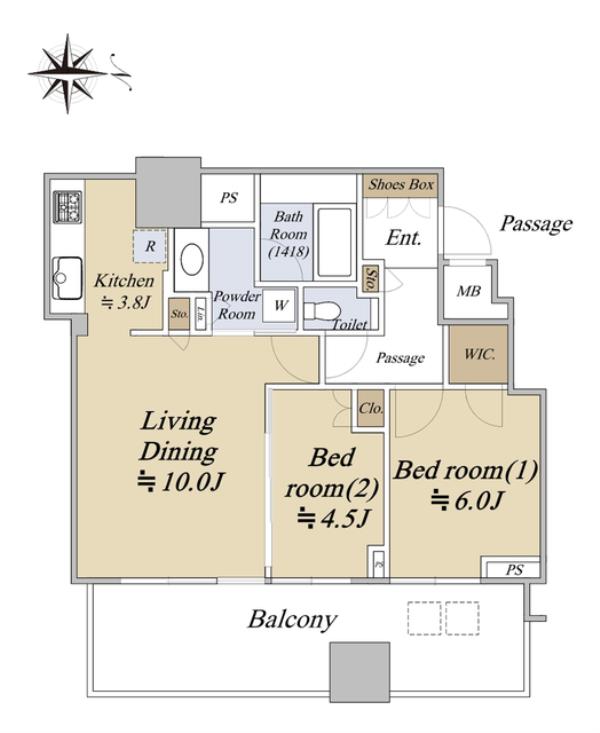 | 専有面積 | 58m2 | 間取り | 2LDK |