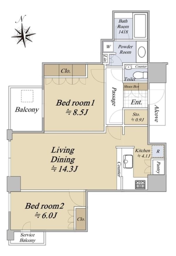 | 間取内訳 | LDK18.4畳 洋室8.5畳 洋室6.0畳 | ||