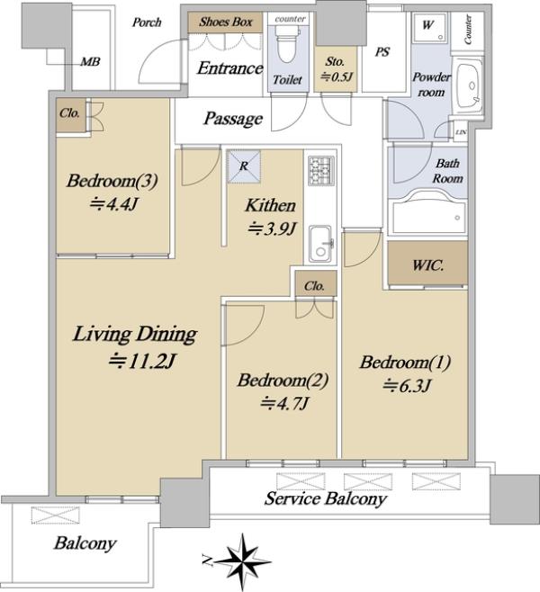 | 間取内訳 | LDK15.1畳 洋室6.3畳 洋室4.7畳 洋室4.4畳 | ||