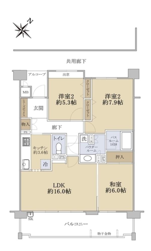 | 間取内訳 | LDK16.0畳 和室6.0畳 洋室5.3畳 洋室7.9畳 | ||
