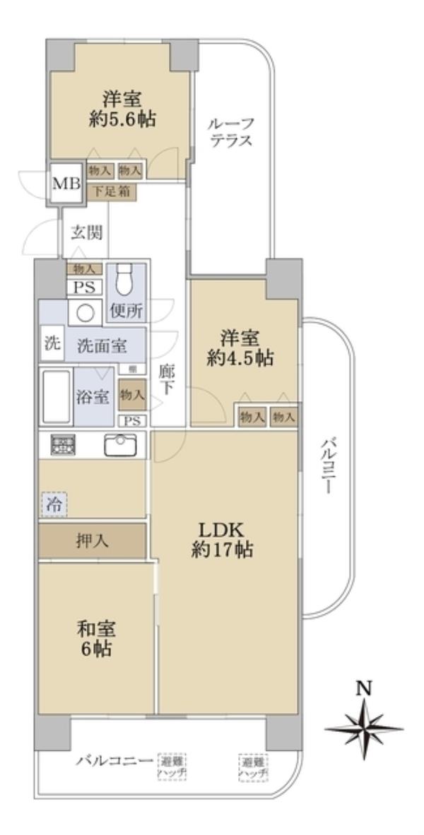 | 間取内訳 | LDK17.0畳 洋室5.6畳 洋室4.5畳 和室6.0畳 | ||