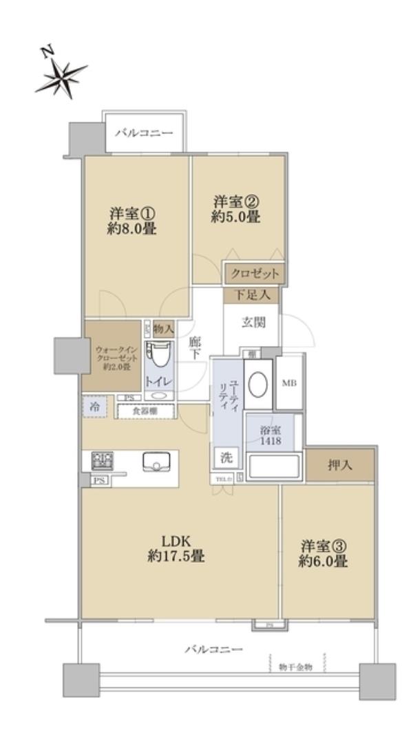 | 間取内訳 | LDK17.5畳 洋室8.0畳 洋室6.0畳 洋室5.0畳 | ||