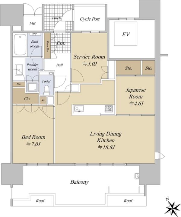 | 間取内訳 | LDK18.8畳 洋室7.0畳 和室4.6畳 その他5.0畳 | ||
