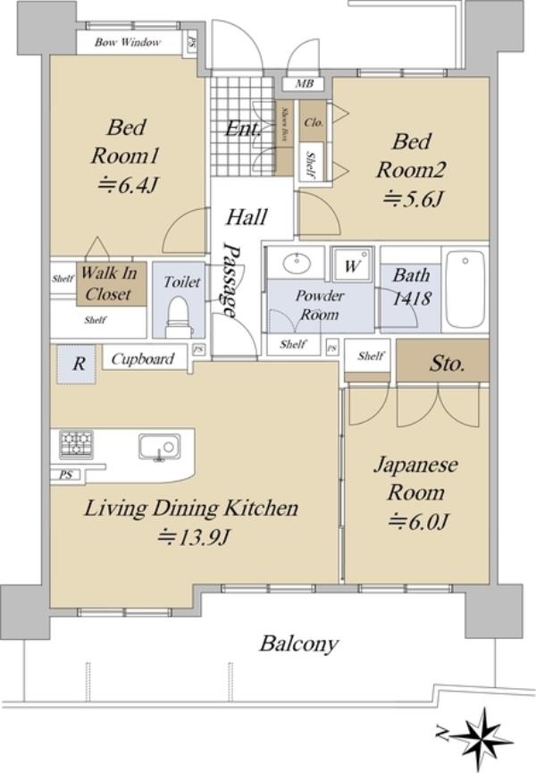 | 間取内訳 | LDK13.9畳 洋室6.4畳 洋室5.6畳 和室6.0畳 | ||